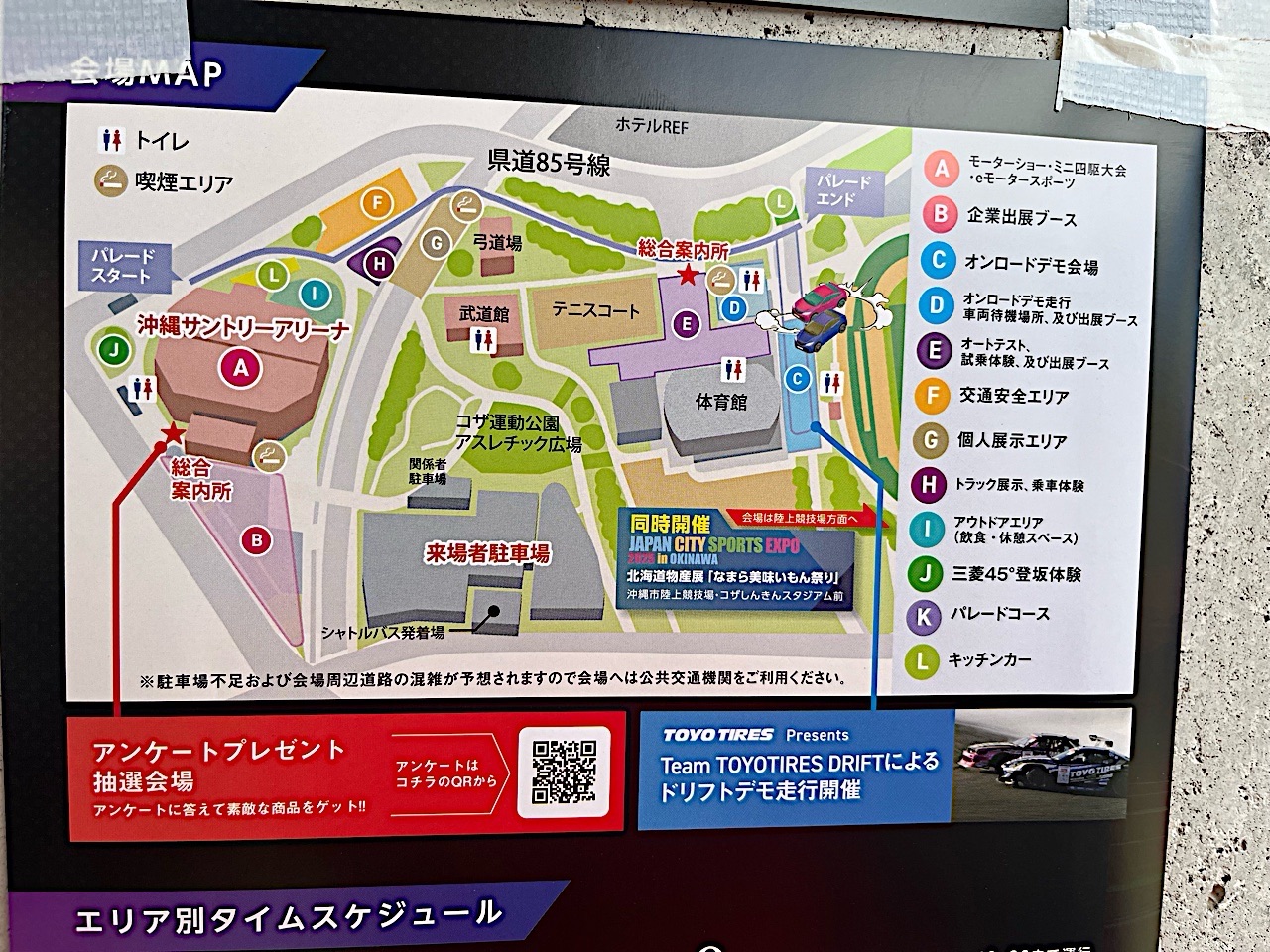 屋外にも展示ブース、ドリフトとミニバイクレースのS-1GPからデモラン、