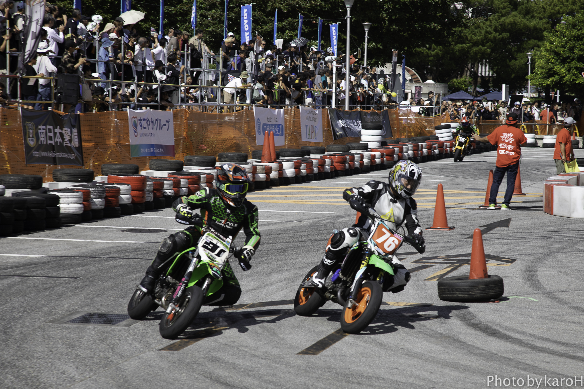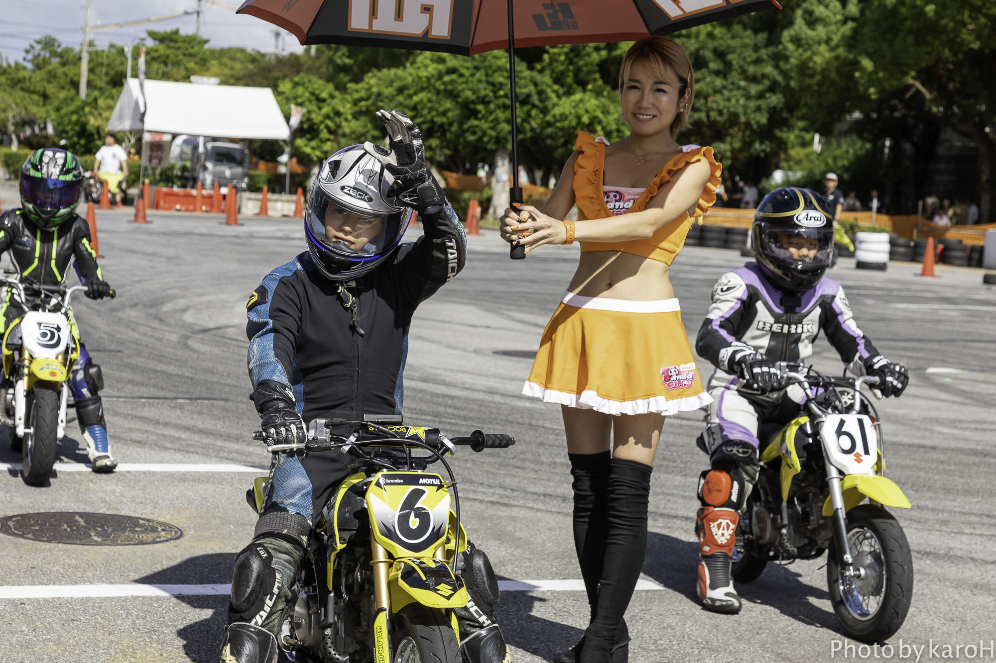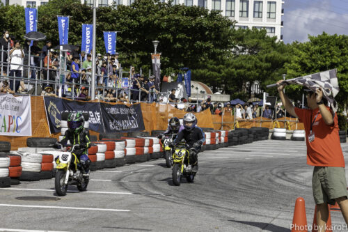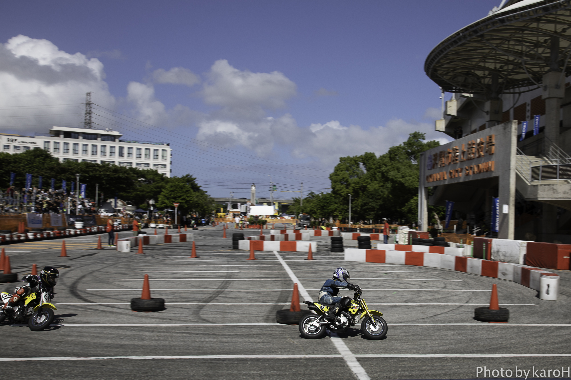 デモラン会場はドリフトとミニバイクが交互に走行するので、