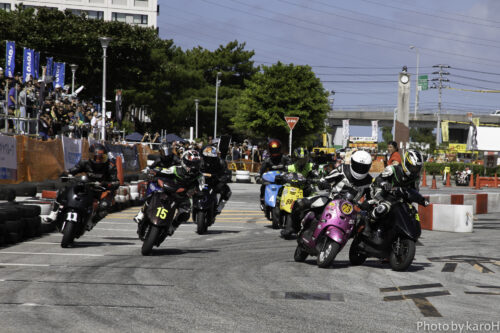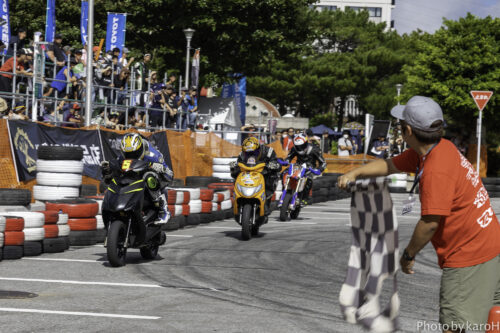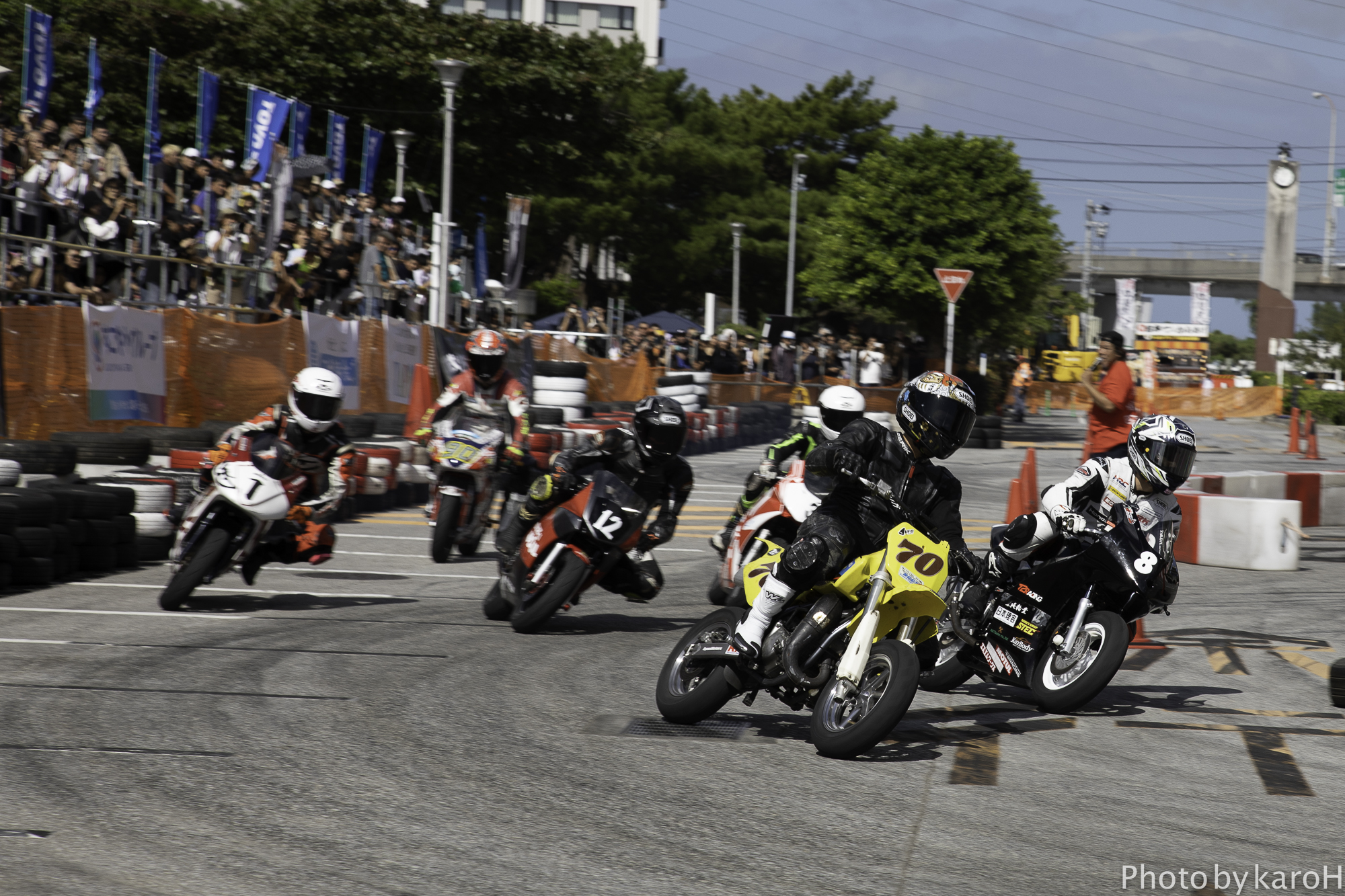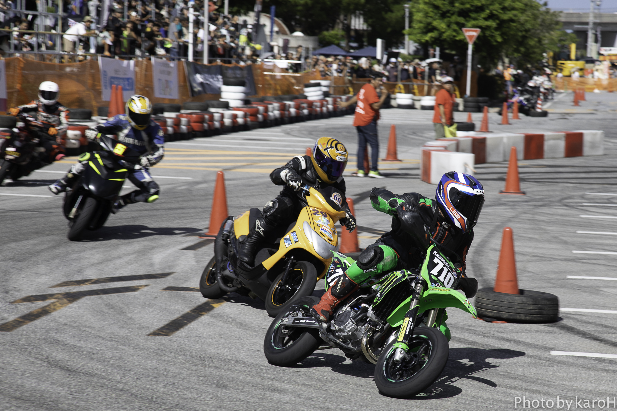 デモラン会場はドリフトとミニバイクが交互に走行するので、